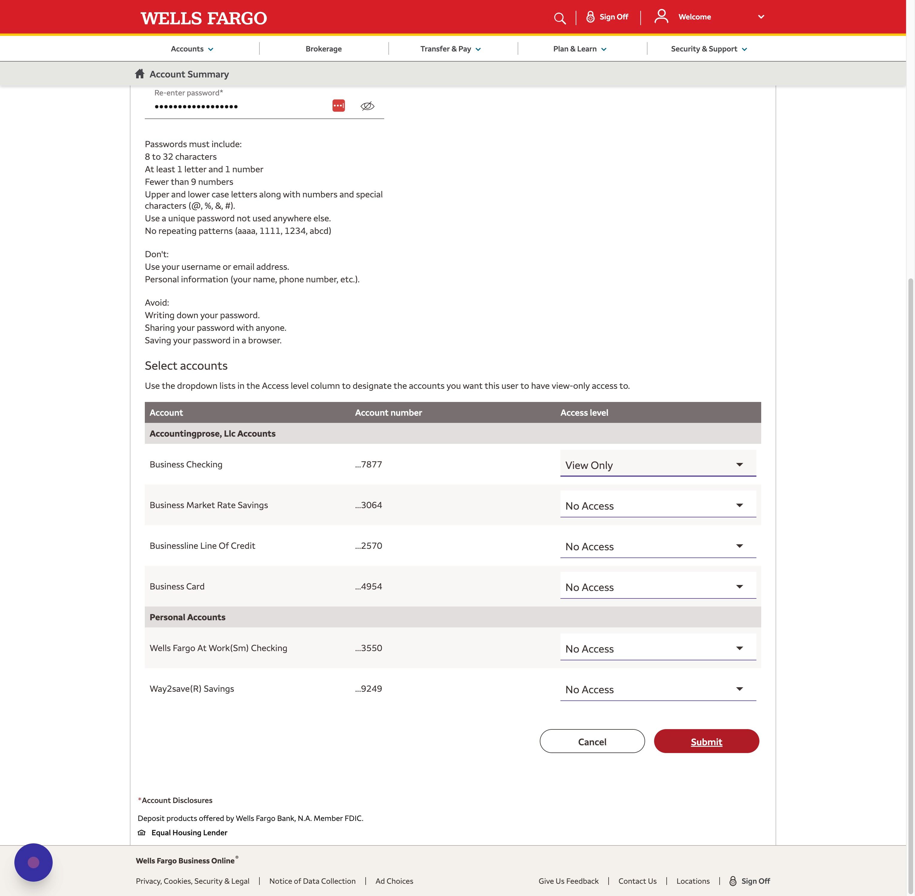 6. Choose the accounts you want us to access by selecting the Access Level dropbox and choosing "View Only"